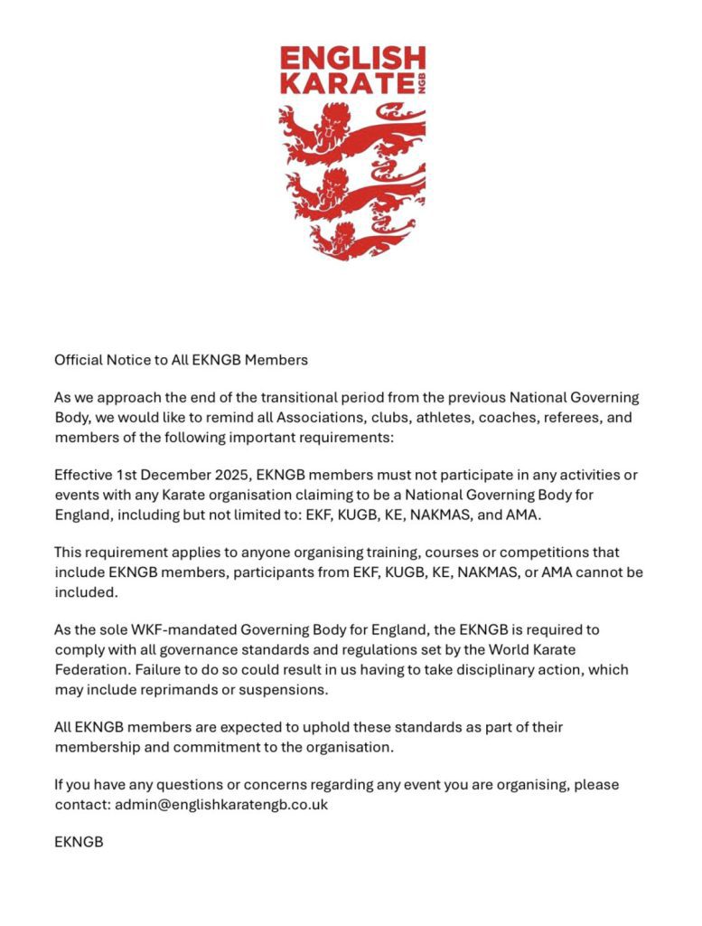 As other federations move towards stronger governance frameworks that prioritise accountability, athlete welfare and democratic structures, karate faces a defining choice. The sport must decide whether to continue operating under a model shaped by personal authority or adapt to the modern standards that many governing bodies now consider essential.